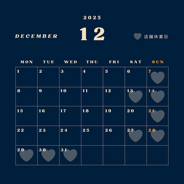 12月の営業カレンダーです。